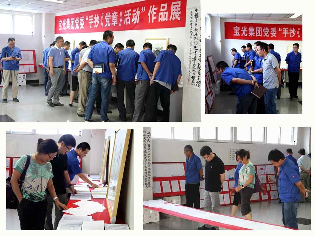 7月12日,寶光黨委組織的“手抄《黨章》活動”作品展在科技大樓一樓西廳正式拉開了帷幕。當天下午,公司領導李軍望、岳永學、張軍、胡唯、袁軍為、黨向東及各單位相關領導30余人參觀了展覽的作品。